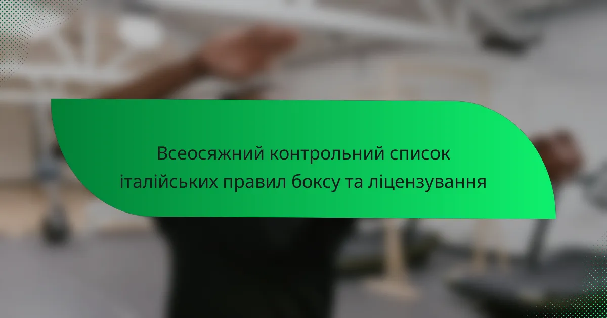 Італійські правила боксу є важливими для забезпечення цілісності та безпеки спорту, охоплюючи такі сфери, як ліцензування, вагові категорії та просування подій. Ознайомлення з цими правилами є життєво важливим для спортсменів, промоутерів та тренерів, щоб ефективно орієнтуватися в конкурентному середовищі. Цей комплексний контрольний список описує необхідні кроки та вимоги для дотримання італійських стандартів боксу.