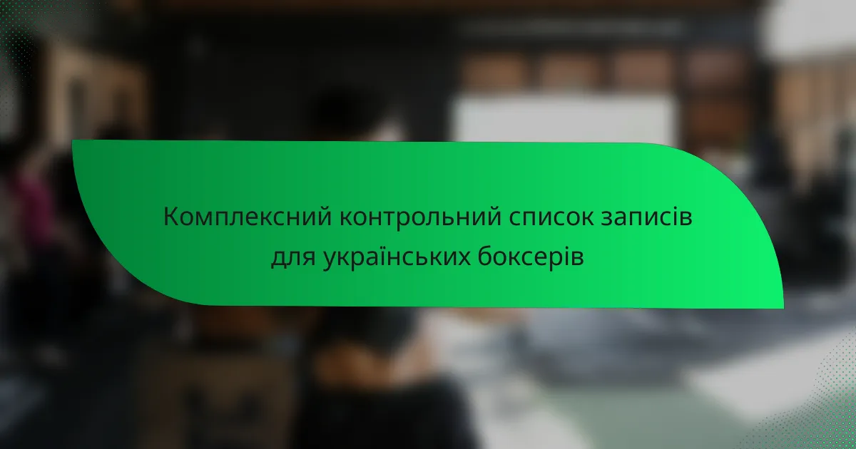 Записи для українських боксерів повинні охоплювати ряд атрибутів, які надають комплексний огляд їхньої кар’єри та можливостей. Ключові елементи включають особисту інформацію, історію боїв, тренувальні режими та медичні записи, які всі разом сприяють розумінню профілю боксера та його продуктивності.