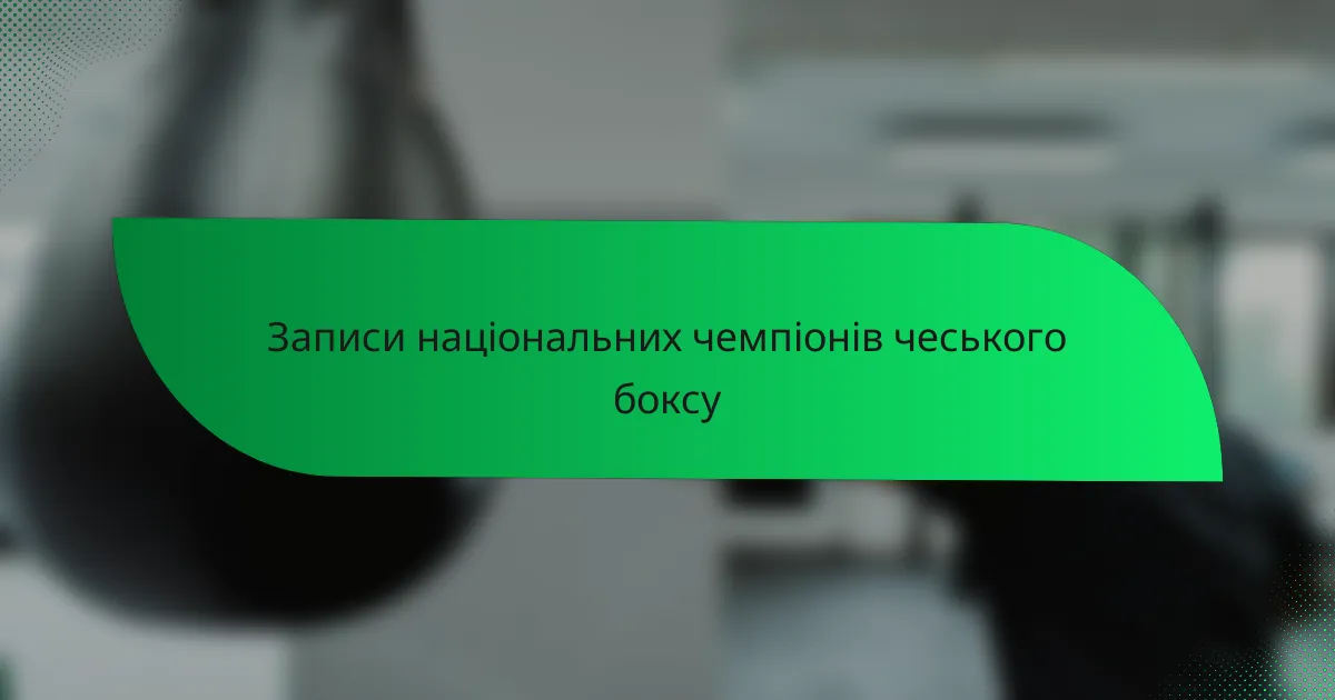 Записи національних чемпіонів Чехії з боксу відображають досягнення та віхи бійців, які досягли успіху у спорті в країні. Ці записи включають кількість виграних титулів, помітні бої та внесок у розвиток спорту в Чехії.