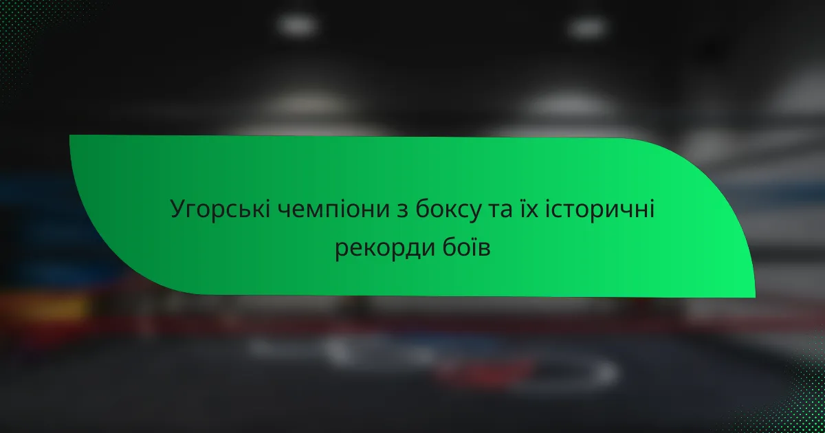 Угорські чемпіони з боксу мають багатий історичний контекст, що характеризується вражаючими рекордами боїв, які відображають їхні навички та рішучість. Ці рекорди включають перемоги, поразки та помітні досягнення, які сформували спорт в Угорщині.