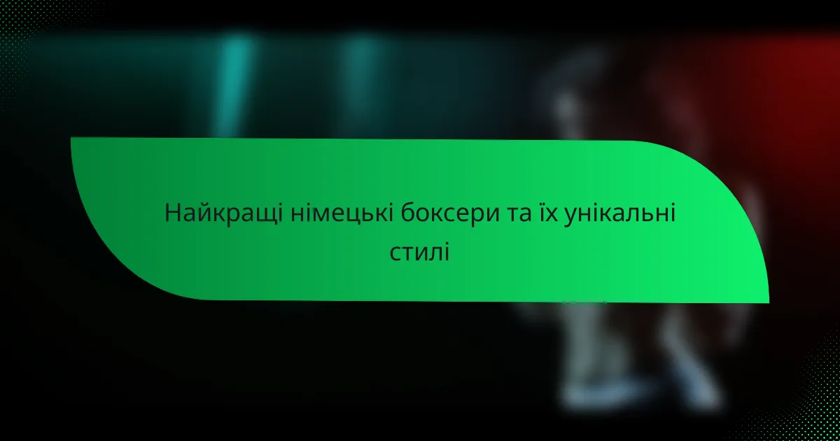 Німецькі боксери відомі своїм дисциплінованим підходом, поєднуючи технічні навички зі стратегічним мисленням. Їхні унікальні стилі часто підкреслюють сильні основи, роботу ніг та акцент на захист, що робить їх грізними суперниками на рингу.